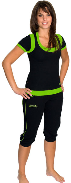 D�msk� triko s kr�tk�m ruk�vem z elastick�ho materi�lu, kulat� v�st�ih, design dvou tri�ek na sob�.